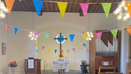 Ein weiterer besonderer Programmpunkt war die gemeinsame Erinnerung an die Taufe. Am Taufbecken konnten sich Kinder und Erwachsene segnen lassen – auf Wunsch sogar mit einem kleinen Tattoo in Regenbogenfarben, das als sichtbares Zeichen der Zusage Gottes mit nach Hause genommen werden konnte.